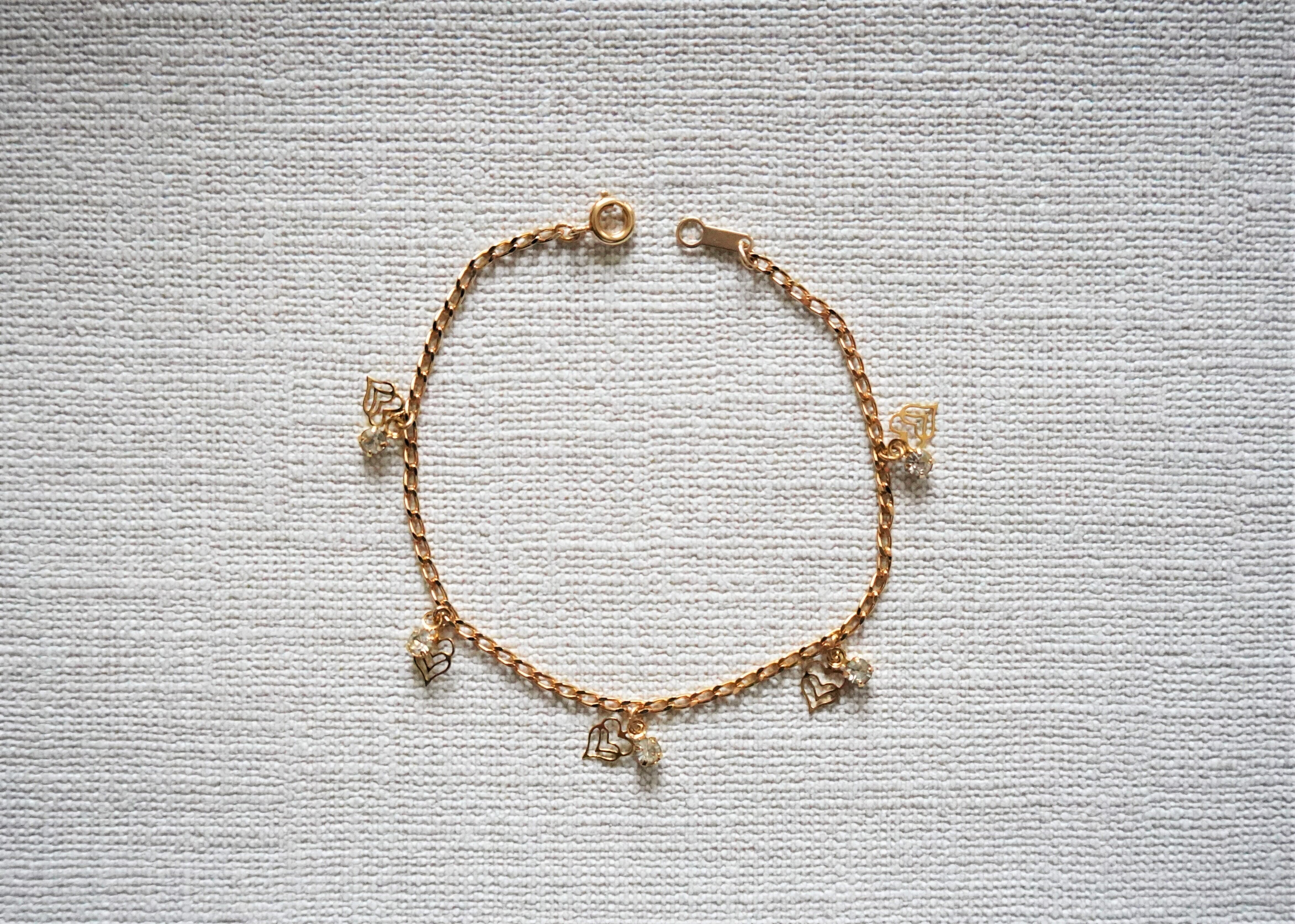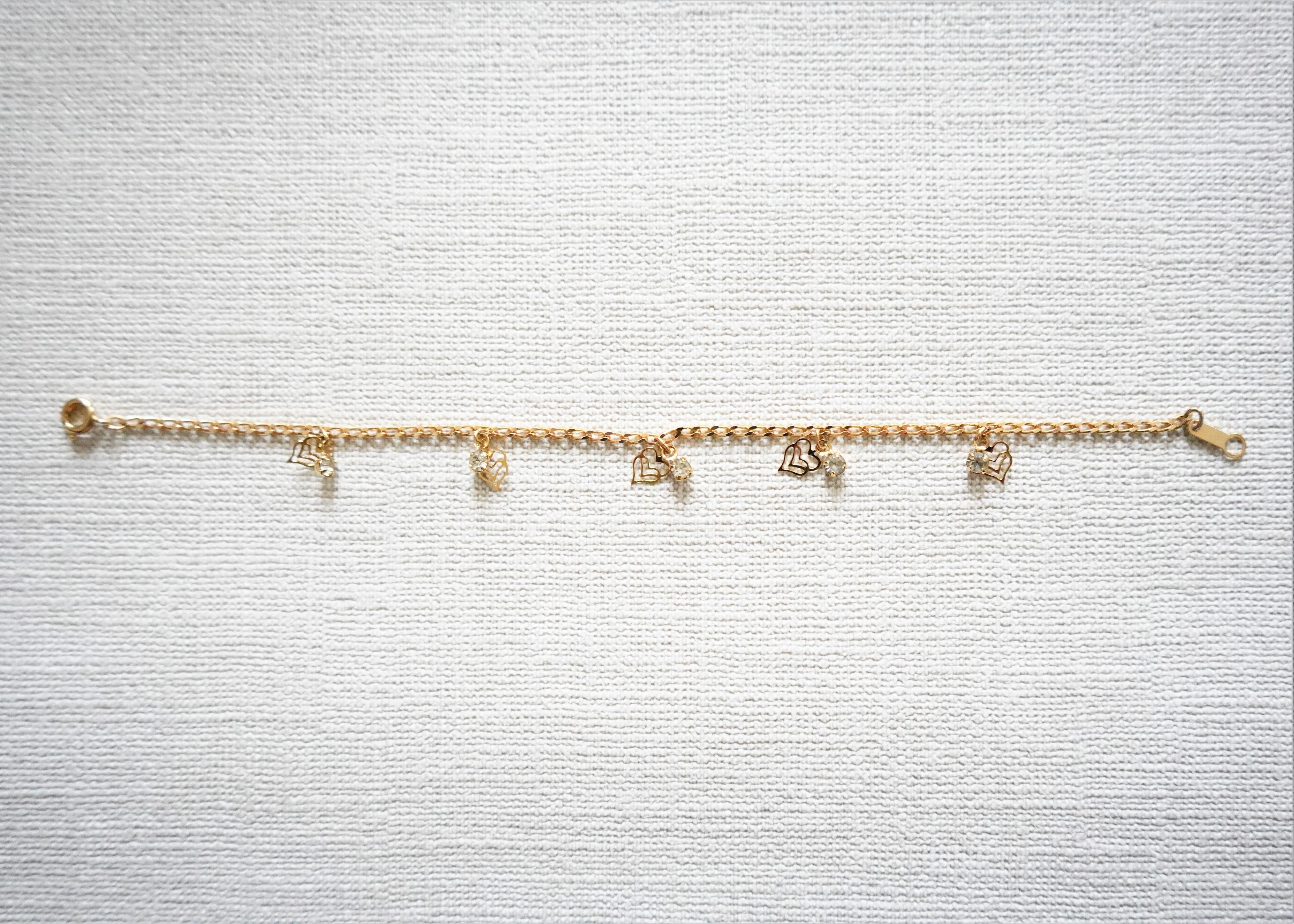 ハートチェーンとガラスパーツのシングルチェーンの上品なブレスレットです。