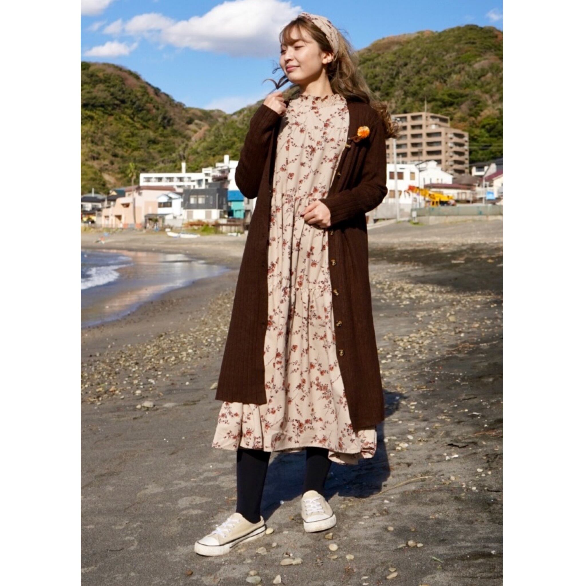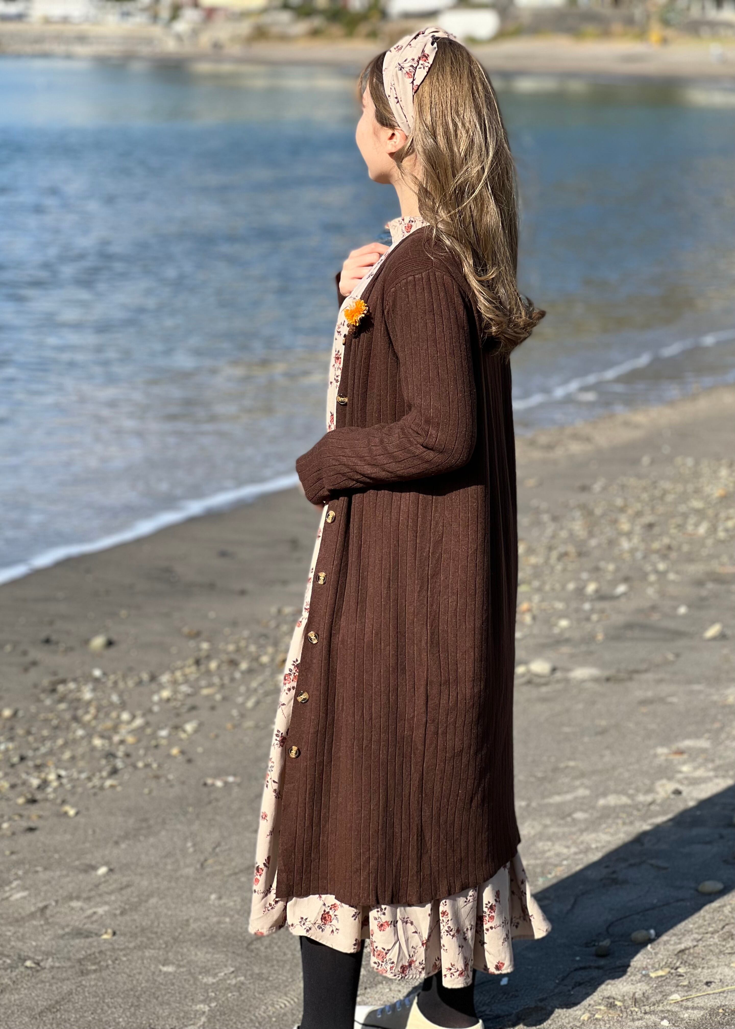 リブニット/ロングカーディガン/ブラウン