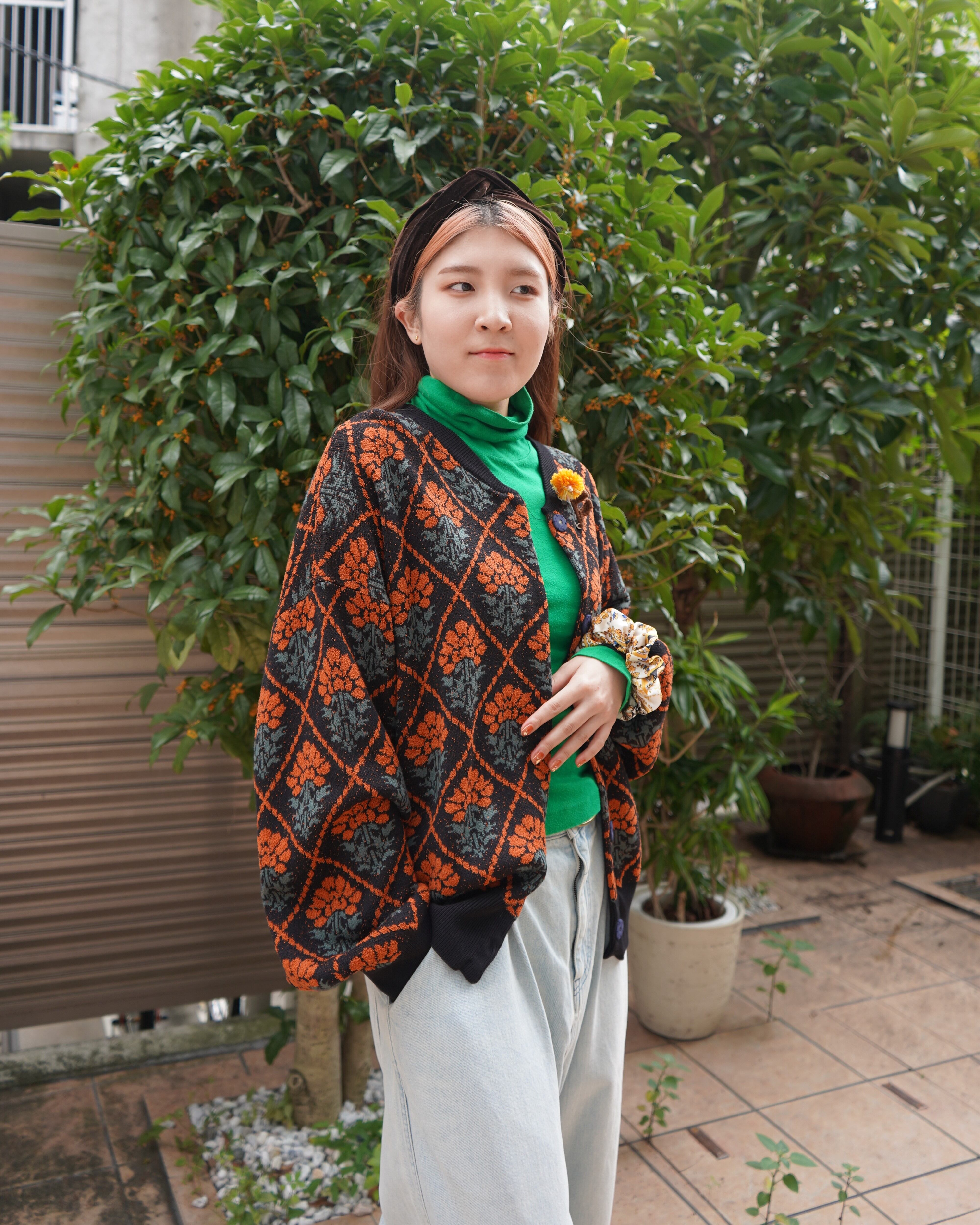 レトロなデザインは、懐かしい雰囲気を演出するだけでなく、個性を引き立てる一着でもあります。一点ずつ丁寧に作られたカーディガンは、いつまでも愛用できるアイテムです。