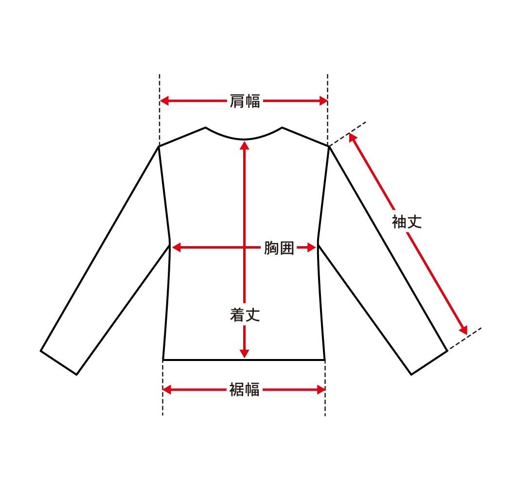 着丈:55㎝ 胸囲:59㎝(ぐるり118㎝) 肩幅:60㎝ 袖丈:52㎝
